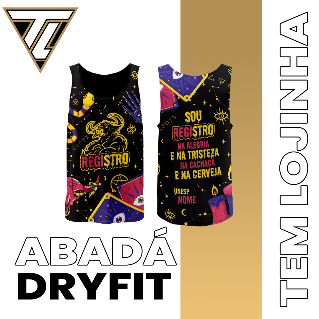 Abadá em dryfit com proteção UV personalizado com sublimação total e sem limites de cores dando total liberdade para criação da sua arte.
